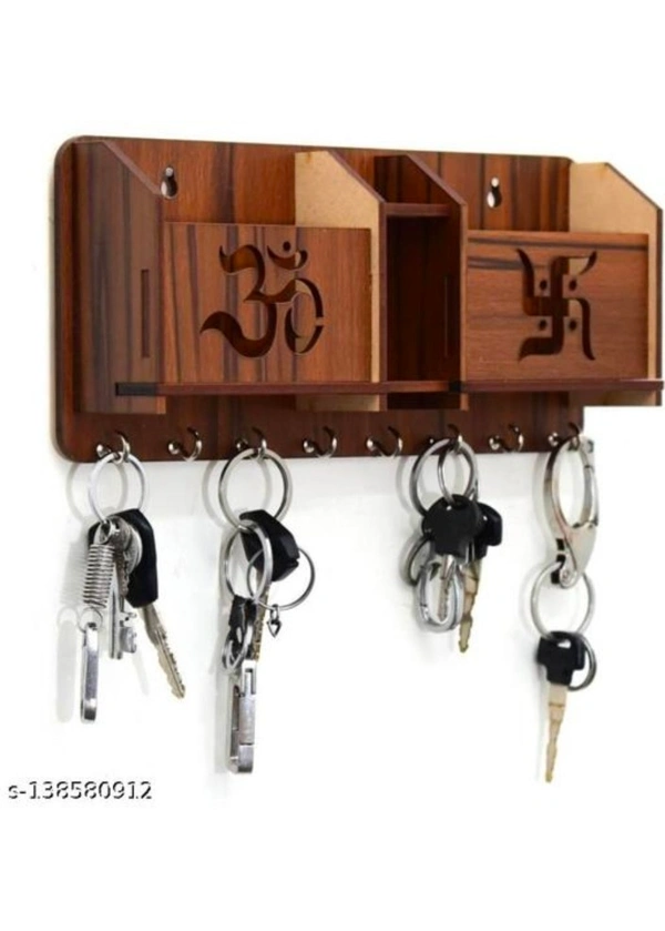JAY Enterprises Wood Key Holder (8 Hooks)Name: JAY Enterprises Wood Key Holder (8 Hooks)Material: WoodenColor: BrownProduct Length: 10 InchProduct Height: 1.5 InchProduct Breadth: 0.5 InchNet Quantity (N): 1It is real trouble when you lose your keys. You have to make little space in your house where you can put your keys. So be creative and make that space interesting and stylish b